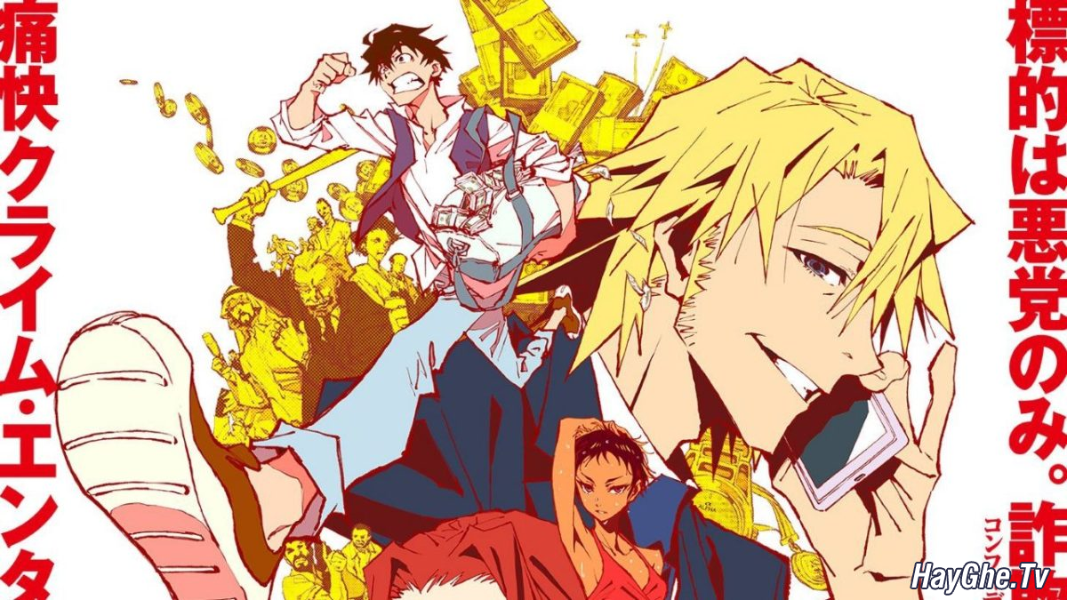 Сюжет же прост и интересен отдавая некой ноткой всех фильмов про ограбления(в каждой арке свои отсылки или же клише): история повествует о мошенниках которые проводят махинации в разных странах, с эксцентричными личностями и в разных областях будь то гонки на самолетах или же продажа наркотиков которых... как бы не существует. Благодаря всем этим локациям, ярким персонажам и необычной стилистике аниме очень годное. Так же хочется отметить очень качественный сценарий который своими поворотами заставит вас не раз хвататься за голову с вопросами "это все часть плана или же...". Всем советую.