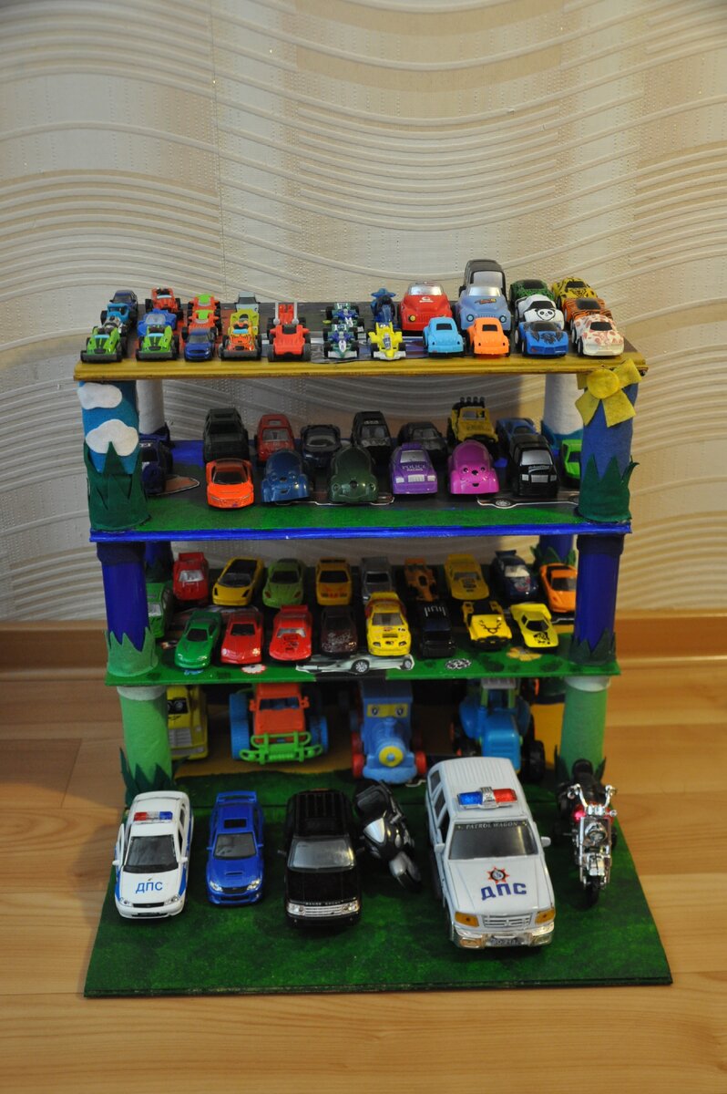 Исходя из количества машин, я сделала 3 полки. При этом при желании можно было таким же способом в дальнейшем увеличить этажность.