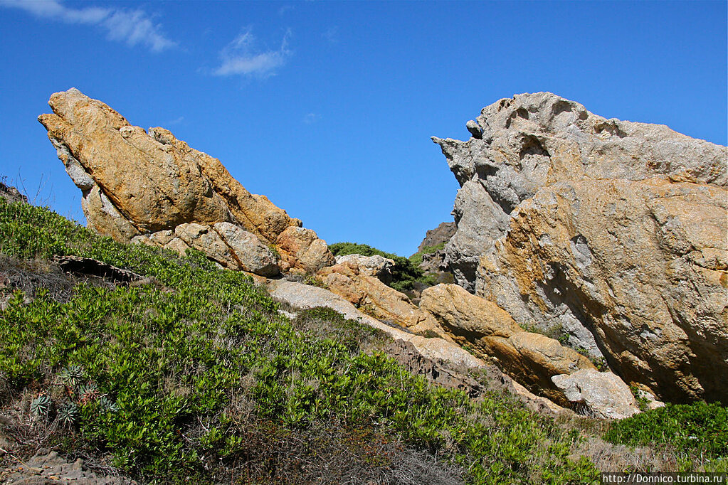 Мы стали обходить полуостров дальше, двигаясь от этого места на север. Перелезли через крышу арки, миновали еще две небольшие бухты, не предлагавшие ну никакой возможности для купания, чтобы в конце концов найти тонкую щель по которой можно было спуститься к берегу с относительно неплохой возможностью для купания.Я нырнул первым и надо сказать просто обалдел от того насколько здесь была холодная вода. Южнее на Коста Браве в это время было еще 20 градусов, что вполне комфортно для купания, здесь наверное не выше 15-16. Поэтому купание длинным не получилось, но и с выходом проблем не было. Многочисленные морские ежи, которых здесь наверное миллионы миллионов, место предполагаемого выхода на берег тщательно обошли и мне не пришлось их на себя накалывать ))Дима тоже искупался, а я в это время понаблюдал за красивой яхтой, которая летала по волнам в этих непростых полных рифов водах. Несмотря на парус, шла она очень быстро думаю не без мотора, так идти только под парусом в таких местах может позволить себе только очень опытный и немного отмороженный морем шкипер...На обратной дороге мы не дошли до рассказанной Алексом (boo) скалы Тудела Тудела, до нее отсюда было еще далековато, но увидели несколько интересных каменных форм, столь восхищавших Дали. Первую композицию я бы назвал "Тролль на крокодиле", а второй камень был немного похож на старую гигантскую черепаху, ползущую вверх по камню...