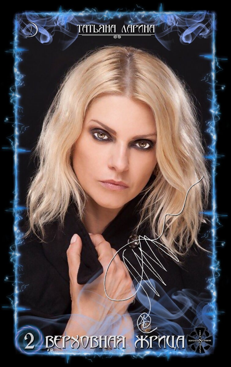 Жрица – этот аркан представляет Татьяна Ларина - Экстрасенс, медиум, финалистка Битвы Экстрасенсов, Битва Сильнейших, героиня «Дневник Экстрасенса» на ТВ3, участница "Последний Герой", "Последние 24 часа", певица, писатель, любящая мать и Сильная Женщина!