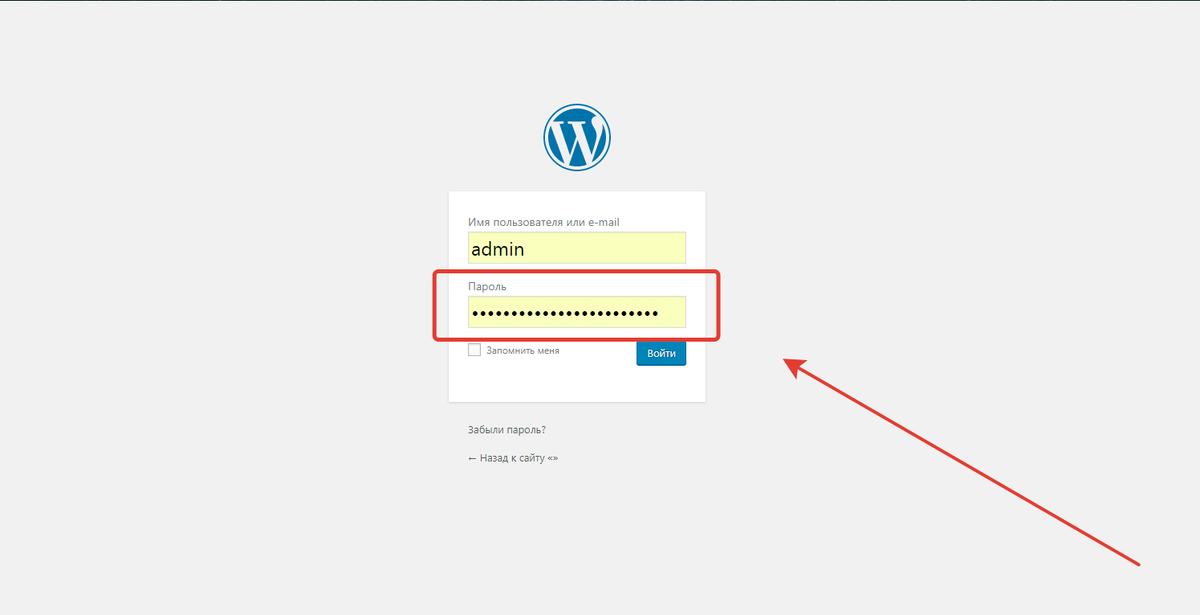 Заходим на страницу входа нужного нам сайта. Я покажу на примере входа в админку wordpress сайта: