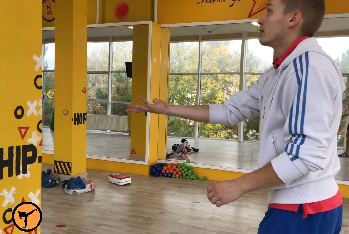 2.УПРАЖНЕНИЕ - нужен партнёр он издаёт звук и одновременно кидает,а ты стоишь перед ним спиной