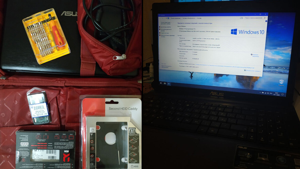 Ноутбук собран теперь делаем апгрейд. Первым делом добавлю оперативную память.