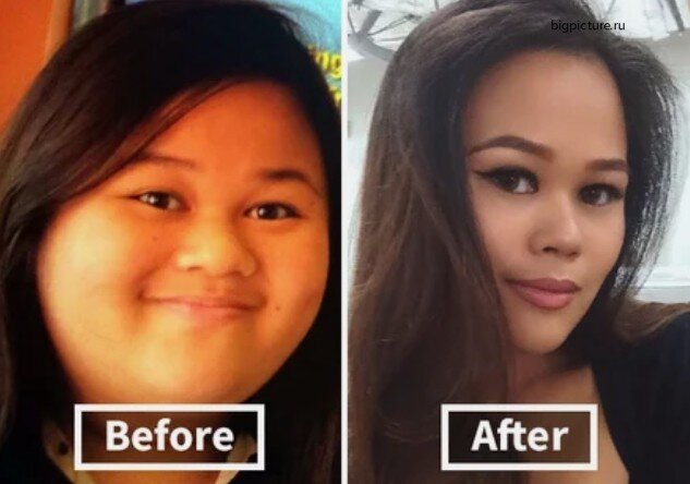 7. Как и многие пышнотелые люди, девушка боролась не только с лишним весом, но и сопутствующими недугами. Всего за десять месяцев ей удалось сбросить полцентнера. Похудение поменяло внешность – из круглолицей дамочки она превратилась в симпатичную барышню-подростка. Многим интернет-комментаторам с трудом вериться в почти сказочное перевоплощение. Впрочем, факт преображение в буквальном смысле на лицо.