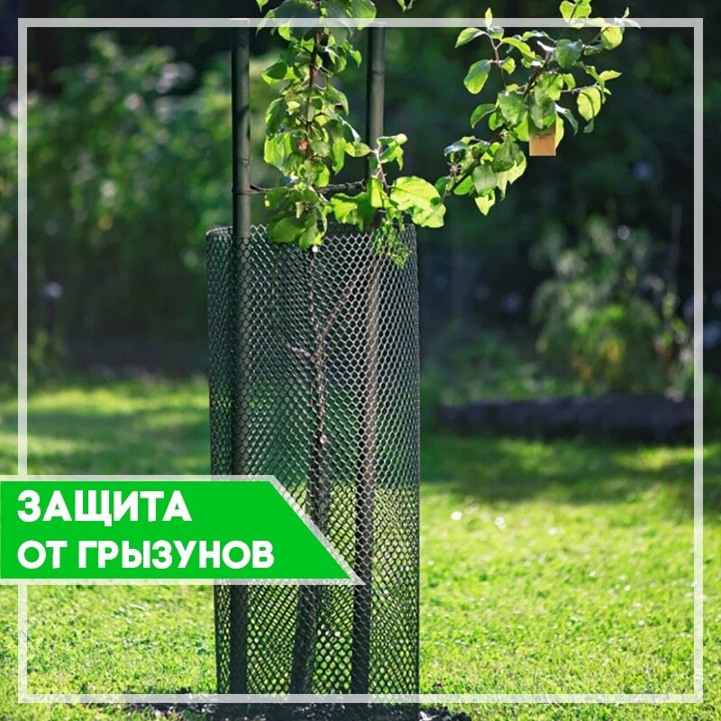 Пластиковая сетка с мелкими ячейками перекрывает доступ животных к растению. Даже если гости захотят прогрызть пластмассу и добраться до заветного лакомого кусочка, они быстро откажутся от этой идеи, ведь вкус пластмассы зайцам и грызунам не нравится.