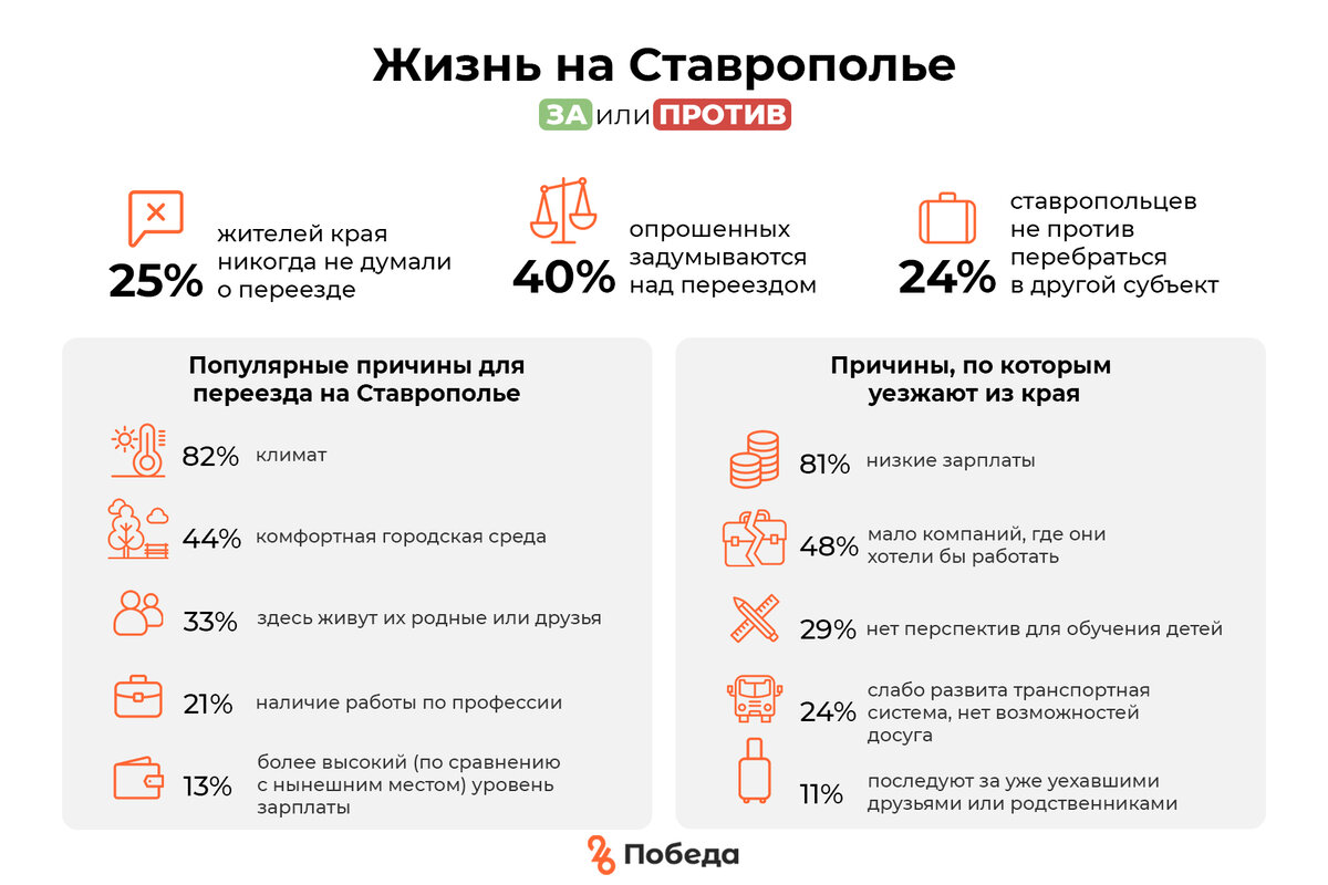 По информации портала HeadHunter, лишь четверть жителей нашего края никогда не думали о переезде в другие регионы страны. Давайте разбираться, что же так не нравится жителям Ставрополья в своей малой родине, и какие блага оставляют их тут.