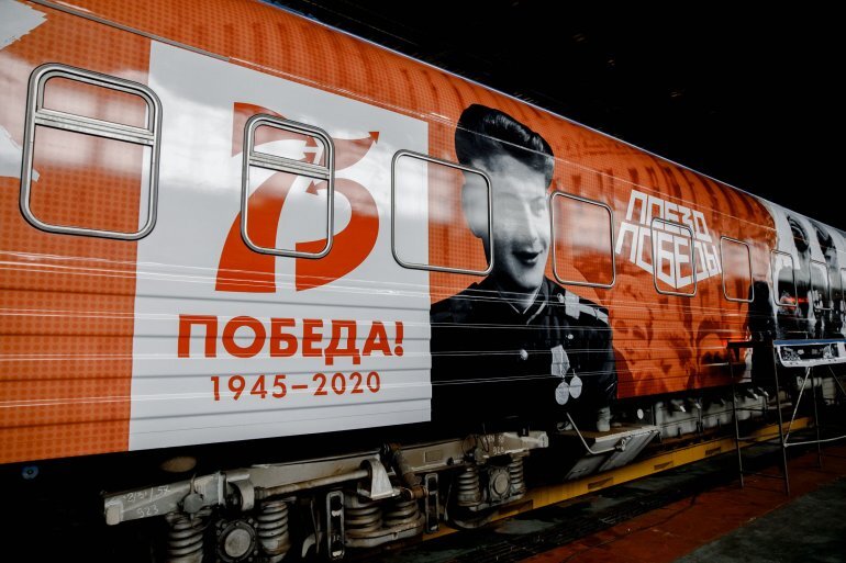 Поезд состоит из 8 вагонов, каждый из которых посвящен отдельному периоду 1940-х годов. Нулевой вагон является входной зоной и отправной точкой путешествия по «Поезду Победы», где посетитель может получить аудиогид, узнать о количестве и тематике вагонов, с помощью