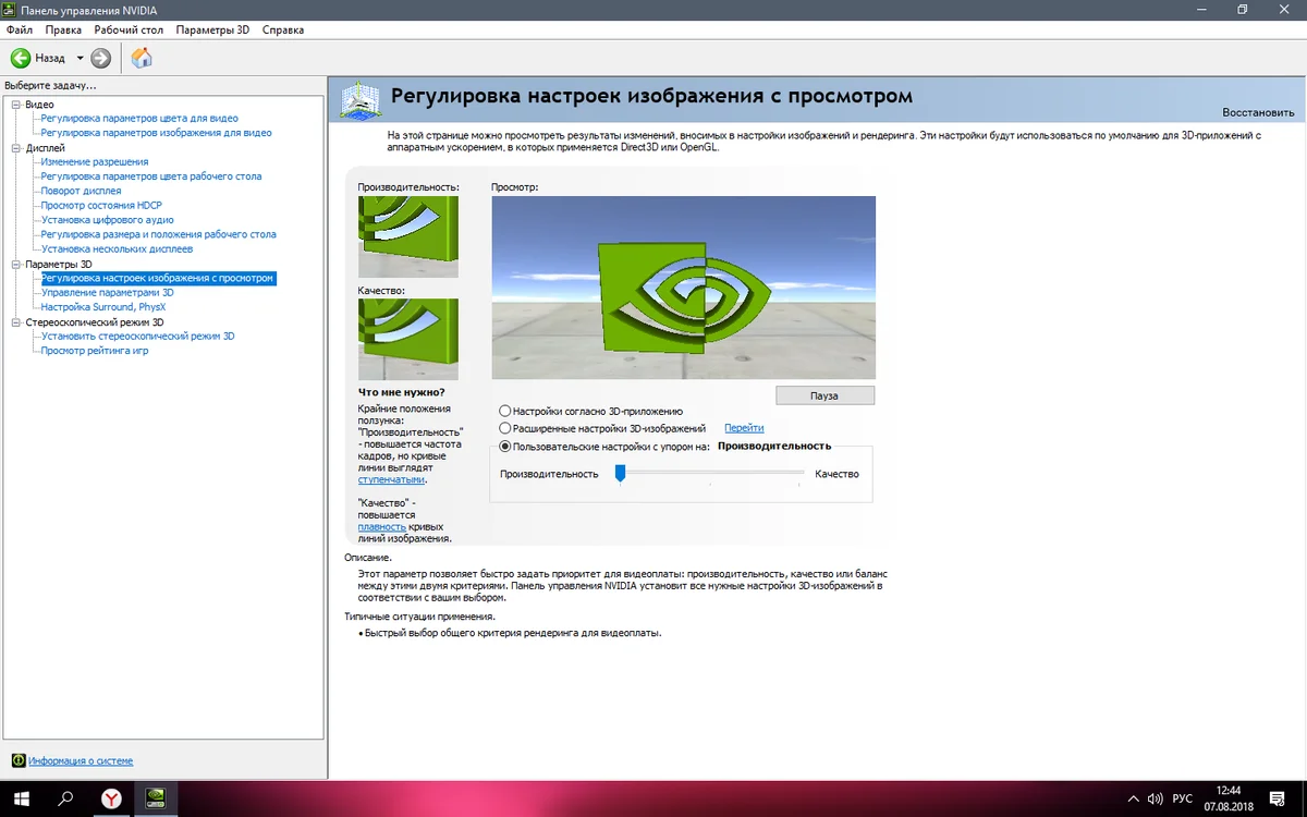 2.Зайдите в панель управления NVIDIA (Если она у вас есть) потом во кладку регулировка настроек изображения и ползунок выкручиваем на производительность как на этом изображении.
