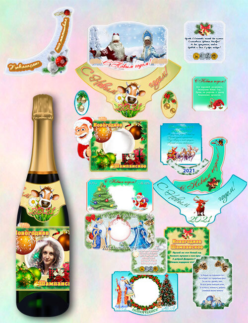 Этикетки на бутылки в подарок на новый год — Год быка 6 PSD + 6 PNG | 2480 x 3508 | 300 dpi | 211,48 MBАвтор: sergey1971