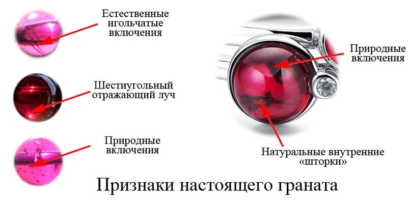 Стеклянные подделки или синтетические гранаты легко распознаются при осмотре под увеличительным стеклом. Они почти всегда слишком светлы и безупречны. Помните – настоящий алый гранат имеет плотный, густой цвет. К тому же, в толще натурального граната обязательно обнаружатся микротрещинки, участки с неоднородным оттенком и иные естественные изъяны. Здесь чётко работает правило: «Слишком идеальная внешность – признак подделки!».