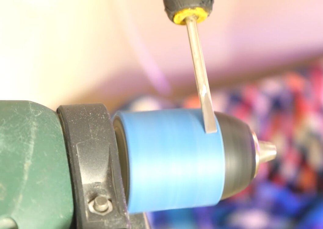 Если все подходит то приклеиваем ее с помощью термо клея. Теперь потребуется закрепить это на столе и получится точильный станок.