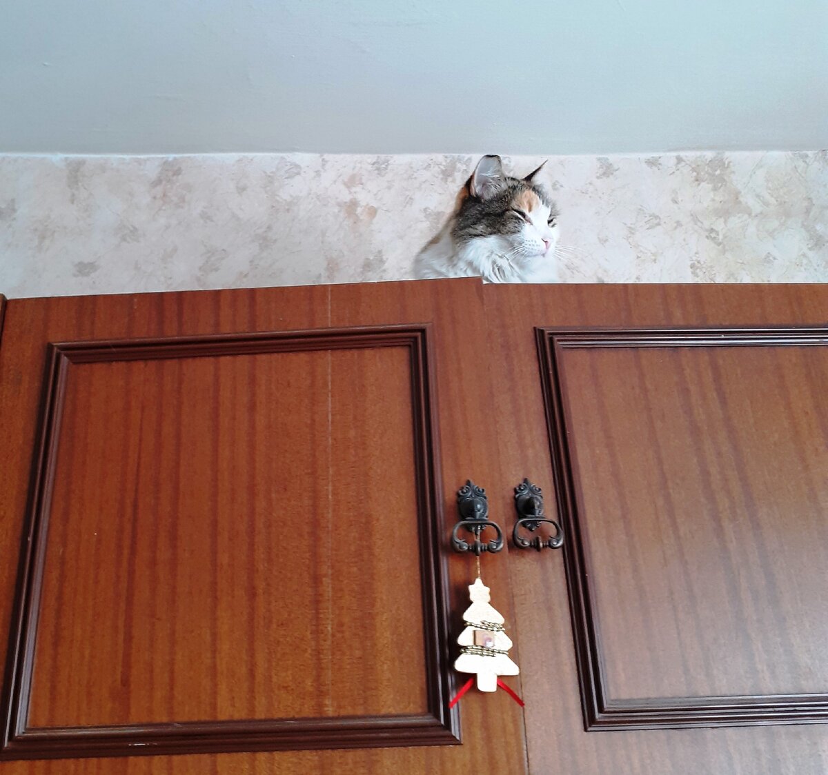 А потом… Злыдня запуталась. Чуть не забыла баночку для Сингулярии и меня долго искала. А я ждала свою тарелочку и Злыдню на шкафу. Конечно, это не совсем завтрак у Тиффани, но зато на высоте.