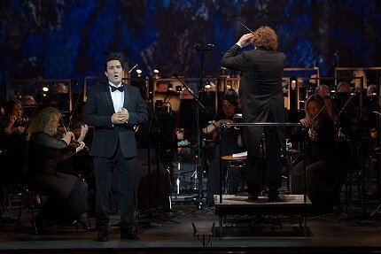 Из не петого в «Стасике» прозвучали также арии из «Андре Шенье», «Манон Леско», «Садко», дуэты из «Сельской чести», «Отелло», терцет из «Эрнани». Образ героического поэта-революционера как нельзя лучше подходит благородной и одновременно страстной манере певца: монолог Шенье стал первым номером программы, справедливо вызвавшим бурную реакцию публики. Голос певца – темный спинтовый тенор, обладающий завидной ровностью регистров, гомогенностью звучания по всему диапазону и обжигающими, несколько силовыми верхами, сразу захватывает слушателя яркостью и насыщенностью. Присущая ранее некоторая матовость звука сегодня явно преодолена – металлического звона стало заметно больше, что благотворно отражается на балансе с оркестром. Веристские партии сегодня очень гармоничны в исполнении артиста – его экспрессивная манера и звуковая мощь, которые он демонстрирует щедро, более чем уместны в эстетике позднего итальянского романтизма.