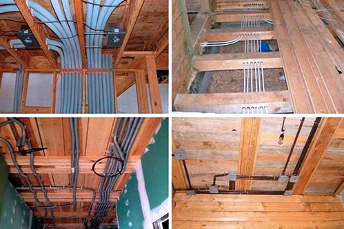 В каркасном строительстве вообще целесообразней и эффективней производить монтаж всех коммуникаций с привлечением одной компании. Тогда у специалистов, монтирующих одну сеть будет возможность вовремя согласовывать свои действия с остальными бригадами.