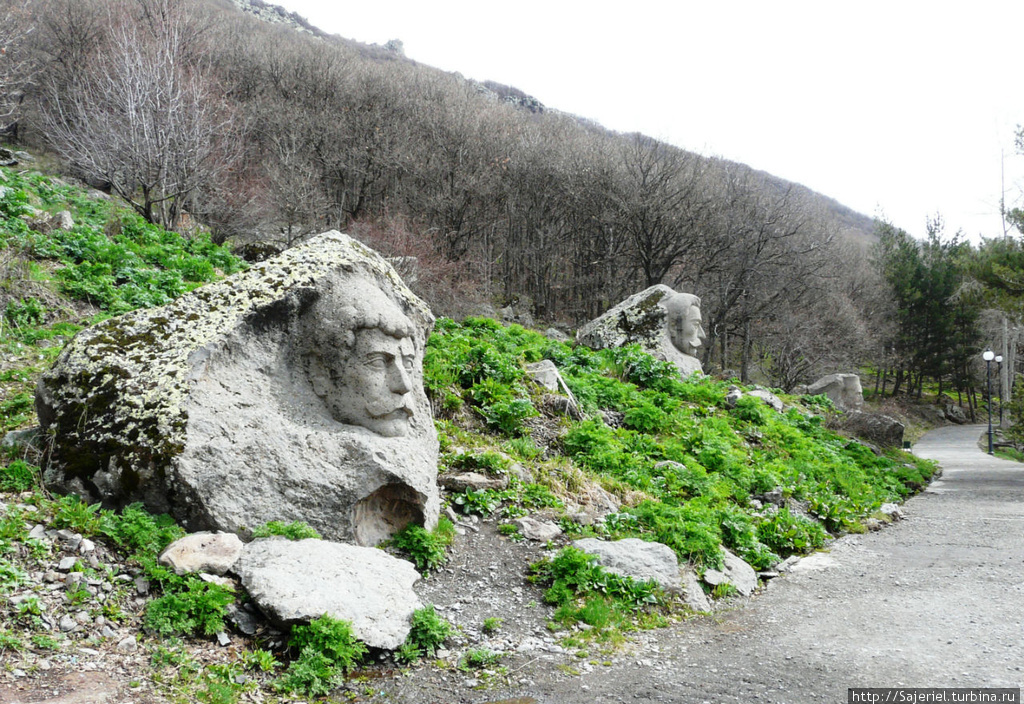 Не каждый десятимесячный ребенок может похвастаться, что стоял на краю кратера вулкана!..В принципе, Артемий тоже не может. Потому что пока особо не умеет говорить :). Однако он побывал уже в трёх странах. И такие горы, как в Армении, Тёма видел впервые! А мы, родители, просто влюбились в эту спокойную (несмотря ни на что), дружелюбную, живописную страну… Мы собирались в Армению ещё до рождения сына. Привлекали горы и древние храмы и крепости. Само собой, оказалось, что в Армении ещё много интересного. Например, вышеупомянутый вулкан. Изумительное озеро Севан, похожее на море, и водохранилища с разными оригинальными прибамбасами типа подводного тоннеля и «маргаритки». Длинная и высокая канатная дорога над ущельями в Татеве и подъемник на горе в Джермуке. Реки, ручьи, водопады, гейзеры… Форелевые фермы. Аисты и ящерицы :). Заводы, производящие вино и минеральную воду. Старинные караван-сараи в горах. Вырезанные в цельных валунах лица. Древняя обсерватория под открытым небом – камни с круглыми дырочками, нечто вроде армянского Стоунхенджа :). И много ещё всякого-разного… За две недели мы объехали бОльшую часть Армении и даже побывали в Нагорном Карабахе. Впрочем, обо всём по порядку…Мы решили ехать в санаторий «Армения», который находится в городе Джермук (2102 м над уровнем моря) . Добирались «Армянскими авиалиниями»; их самолёты летают быстрее, потому что им можно не облетать Грузию :)… На борту порадовал вкусный сыр и «нанокофе» :) (пакетики с мелкими дырочками; их надо, не открывая, засовывать в кипяток — из дырочек «выходит» кофе, а длинный пакетик используется еще и для размешивания). Кстати, Артемий прекрасно спал и по пути туда, и по пути обратно :). От аэропорта в Ереване до Джермука надо около трёх часов добираться на машине, однако и это сына не напрягло. Только вот всех нас расстроило то, что наш отъезд пришелся на период забастовки сотрудников «АрмАвиа», и потому вылет перенесли, и мы покинули санаторий не 12 мая днём, а 13 мая рано-рано утром :(. Ну да ладно. Больше было времени на прогулки. И всё равно с Арменией было несколько грустно расставаться…Мы прибыли в Армению в конце апреля, когда всё вокруг начинало зацветать, но кое-где в горах ещё лежал снег. Пели разнообразные птицы, повсюду журчали-звенели речки, ручьи, водопады, роднички и т.п. Это было сказочно!Мы брали с собой рюкзачок и коляску для Артемия. Нас поселили в очень уютный светлый номер. Выдали детскую кроватку, а когда батареи отключили (вероятно, по причине наступления мая :)) – обогреватель, так как ночью всё же было прохладно. В столовой возле нашего стола поставили детский стульчик. В столовой мы завтракали, обедали и ужинали. Всегда было питание по типу шведского стола плюс несколько видов горячего на выбор (их надо было заказывать у официанта). В основном наш распорядок дня был следующим. После завтрака (а иногда и до) начинались процедуры у мужа. Я в это время гуляла с Артемием. Долго, — потому что места удивительные, есть что посмотреть… Иногда, особенно воодушевлённая видами (а горы каждый день выглядят по-разному!) я пела сыну песни В.С.Высоцкого про горы :). Иногда Артемий ненадолго засыпал в коляске, а я в это время могла спокойно наслаждаться пейзажами, думая о вечном… ну или о какой-нибудь ерунде :). Но, пожалуй, чаще Артемий часть утра проводил в коляске, с интересом гл