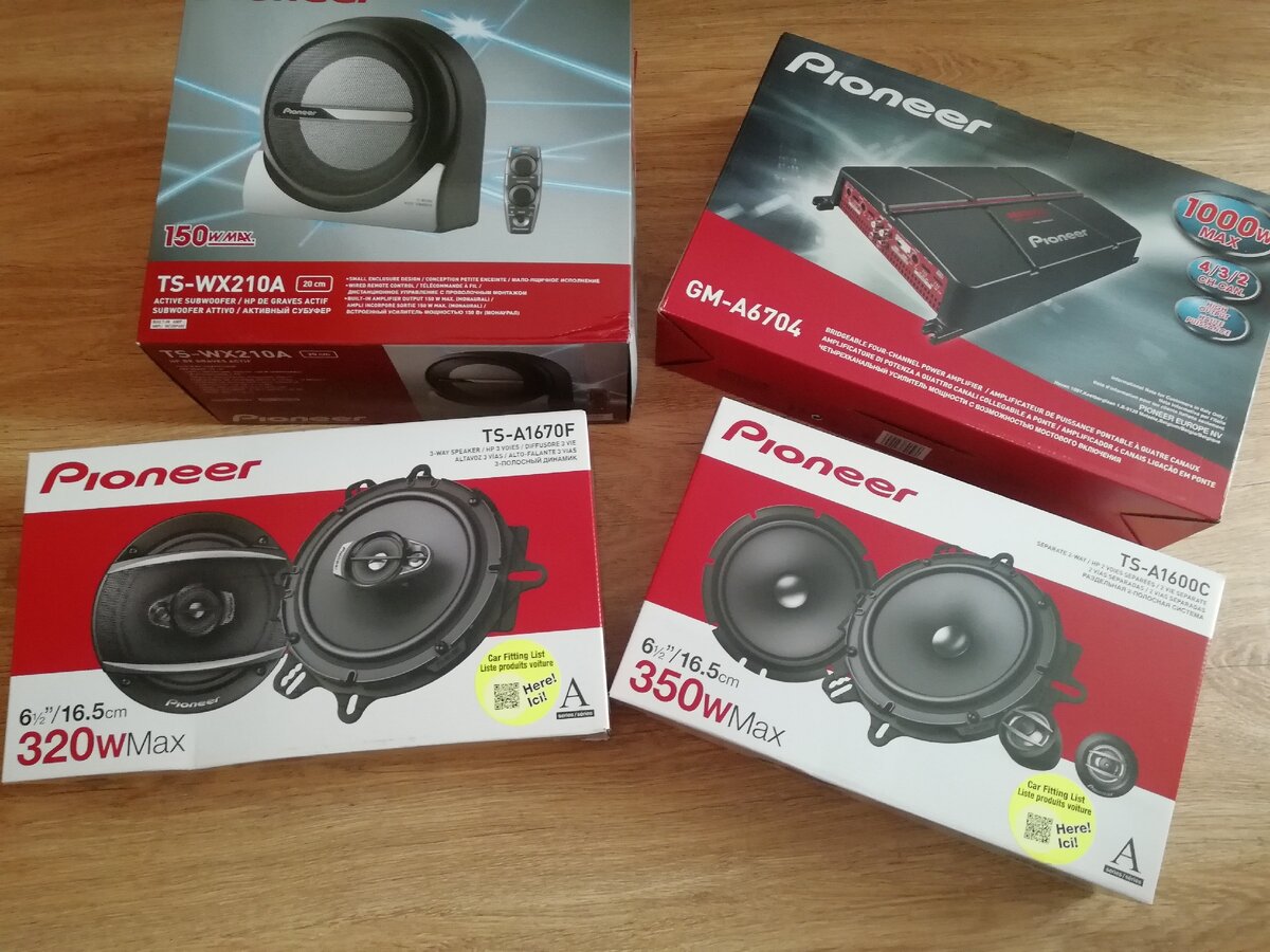 Было решено обновить все 6 динамиков в штатных места. Знающие люди убедили, что одними динамики проблему хрипов не решить. Чтобы звук был на самом деле хороший, обязательно нужен усилитель. Хотя бы простенький. Ну саб желателен, чтобы басы не резались.