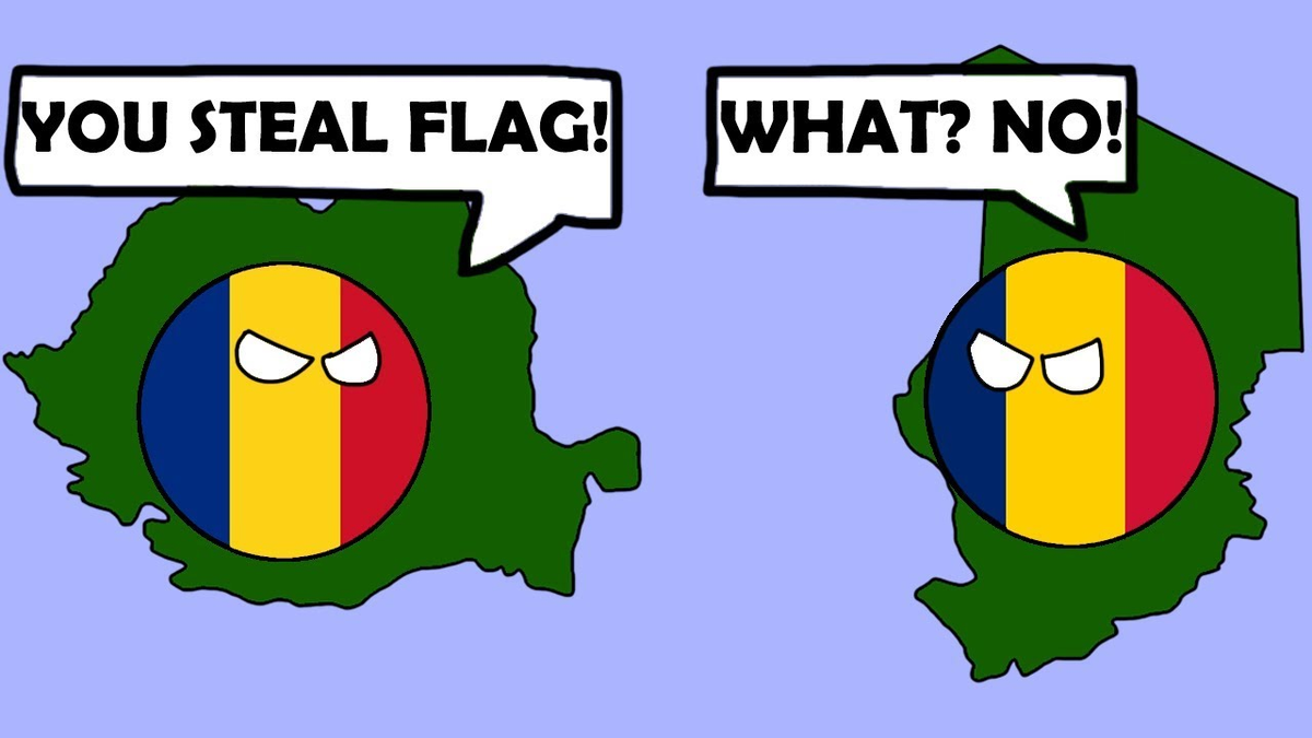 Чад не смущало, что у Румынии похожий флаг, потому что на тот момент на румынском флаге был изображен герб. Таким образом символы двух стран тогда не были идентичными.