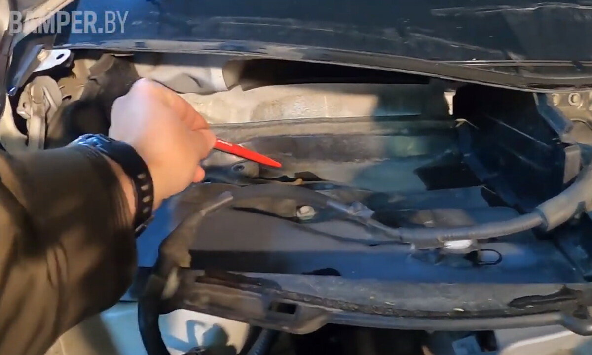Конфигурация коробов может отличается в зависимости от марки автомобиля, но подход к очистке короба стеклоочистителя с большего похож.