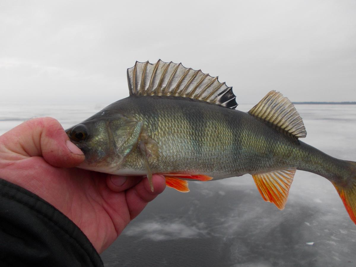 Следующий момент. Видимо из за занятий в молодости мормышечным спортом, я очень сильно привязан к ловле у дна. И для меня ловля в пол воды является очень несвойственной. Вернее, я конечно ловлю, но ловить не у дна мне просто не комфортно. И каждый год я пытаюсь этот недостаток в себе исправить. Конечно, в слое пару метров над дном я ловлю постоянно (благо рост позволяет делать это комфортно), но вот выше… Ловить в паре метров от льда при глубине более 5 метров– это для меня сложно. Но в этом году мне удалось проделать это несколько раз и довольно успешно. А пару раз мне удалось поймать окуня чуть ли не в самой лунке, причем это я не стаю поднял, что ранее случалось часто, а просто рыба стояла значительно выше и у дна поклевок небыло вовсе. Теперь этому моменту буду уделять больше внимания.