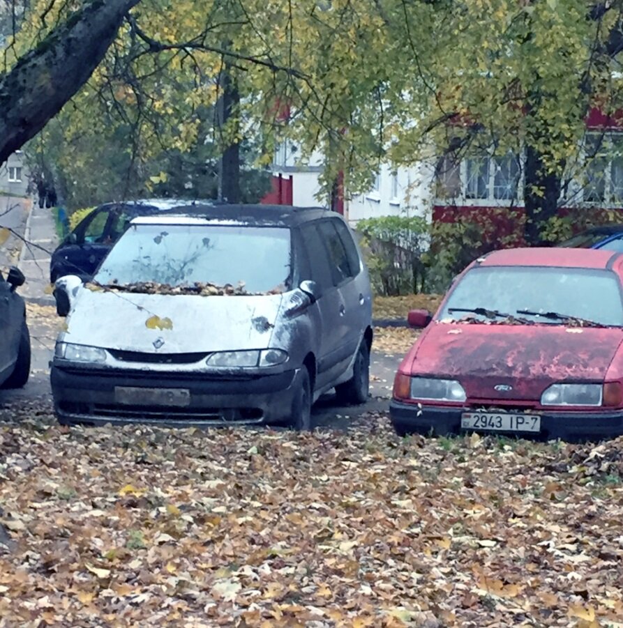 Встречает нас Форд Сиера и космический вагончик от рено.