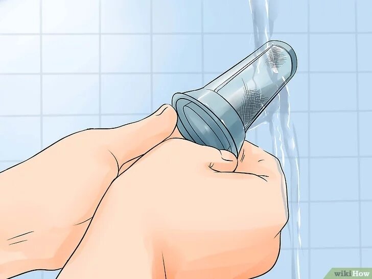 - Вымойте фильтр в раковине мылом и горячей водой. Можно использовать ерш, если вам сложно добраться до некоторых участков внутри фильтра.
