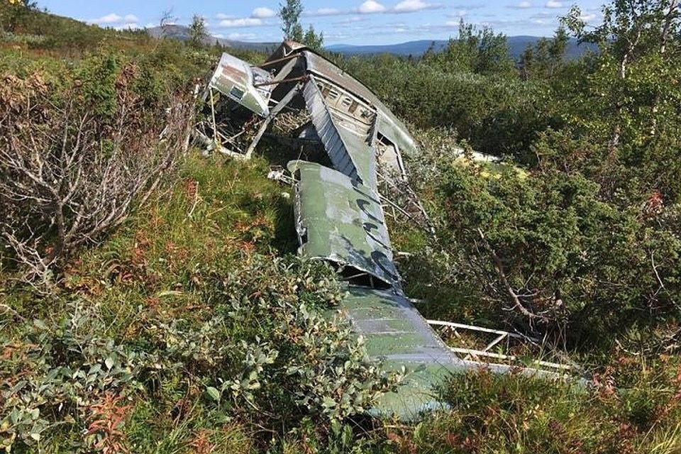 Обломки самолета были обнаружены группой екатеринбургских туристов в 20 километрах к югу от перевала Дятлова, на одной из вершин Северного Урала под названием Гумпкопай.