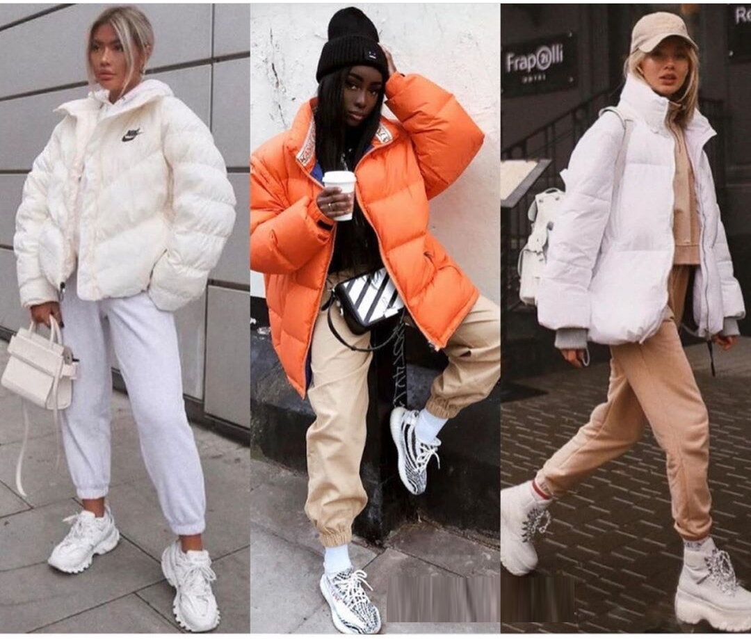 Спортивные брюки-джоггеры стали хитом еще весной и до сих пор остаются на пике популярности. Вместе с объемной дутой курткой они создадут трендовый расслабленный образ для прогулки или похода по магазинам. Из обуви сюда лучше всего идут кроссовки или ботинки на шнуровке. Не забываем утеплять щиколотки теплыми спортивными носками - они тоже сегодня в тренде!