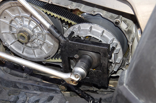 Позавтракав крепким чаем с финиками, команда тронулась в путь.Сразу после старта удалось взять хороший темп, но наступившая дневная жара принесла неприятность – на Мишином квадре порвался ремень вариатора. Несмотря на то, что замена ремня – ситуация вполне прогнозируемая, она, как и все прочие неприятности, всегда случается невовремя! На самом деле, следует отдать должное: без замены ремней мы прошли уже больше 6.000 километров по жаре и на высоких скоростях. По правде говоря, я ожидал, что ремни начнут выходить из строя раньше. Рекорд «долгожительства» ремня в нашей команде был установлен в прошлом году во время пробега «Хожение За Три Моря». Тогда на двух CF6250-X6 ремни пришлось заменить после 9.500 километров, третий – пробежал около 10.000.