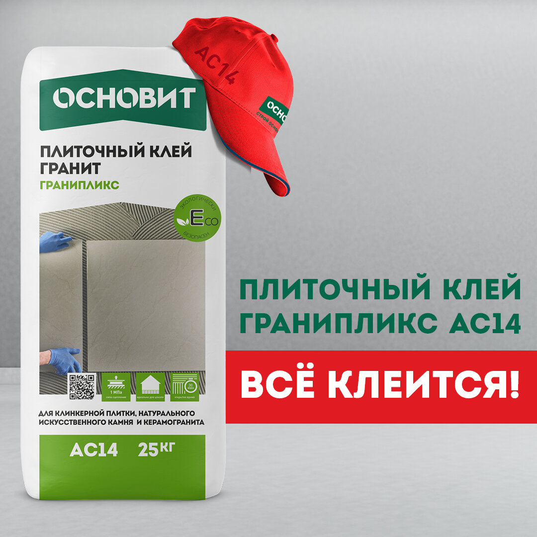 Но есть и универсальные клеи, вроде Основит Гранипликс АС14. Он идеально подходит для улицы и дома, в том числе ванной комнаты, теплого пола или камина. Давайте разберемся, чем он отличаются от стандартных смесей.