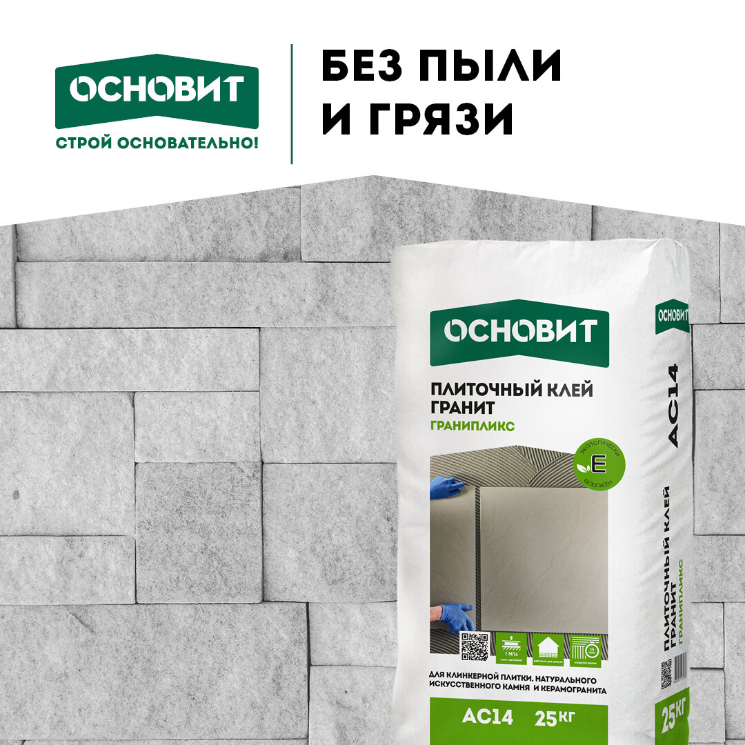 Но есть и универсальные клеи, вроде Основит Гранипликс АС14. Он идеально подходит для улицы и дома, в том числе ванной комнаты, теплого пола или камина. Давайте разберемся, чем он отличаются от стандартных смесей.