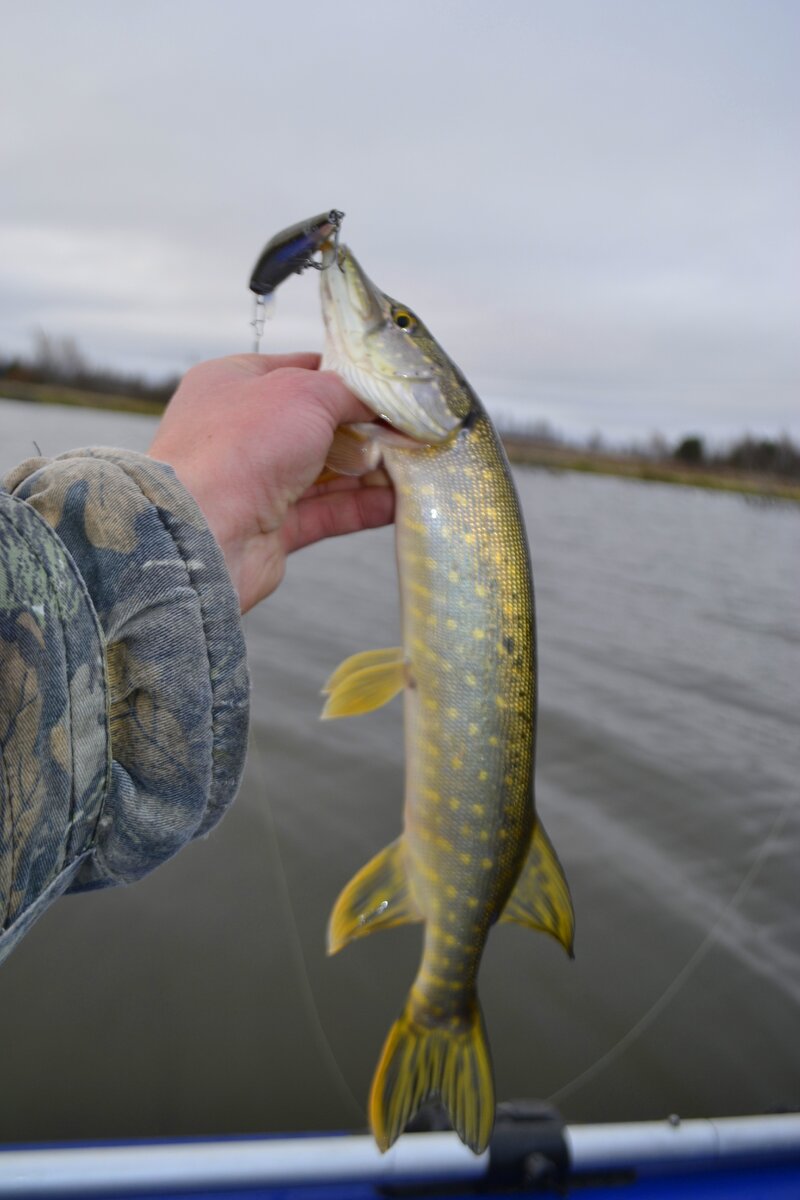 90-ый воблер серебристой расцветки атаковала щучка. Небольшая грамм 600, особо не сопротивлялась.