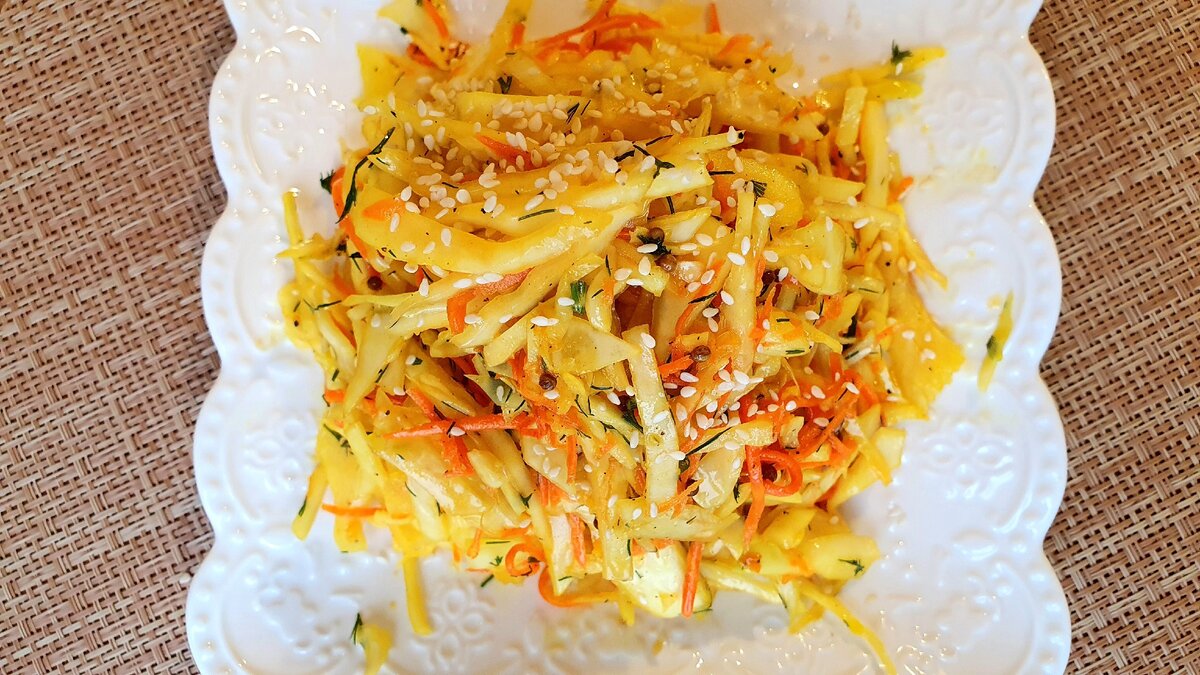 Капуста с морковью по - корейски готова.