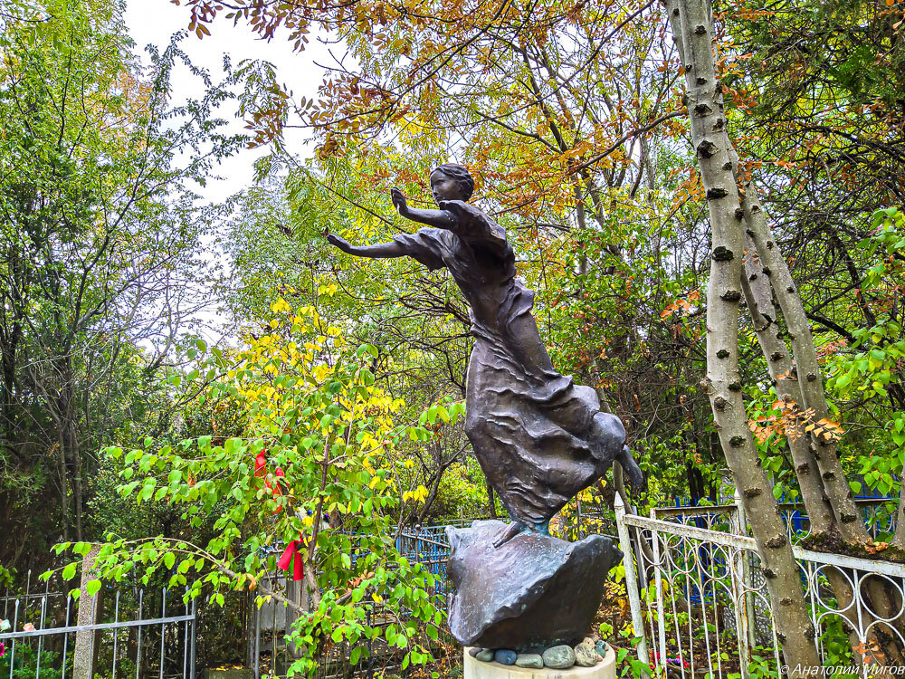 На могиле Грина стоит памятник - бронзовая фигурка девушки, бегущей по волнам.