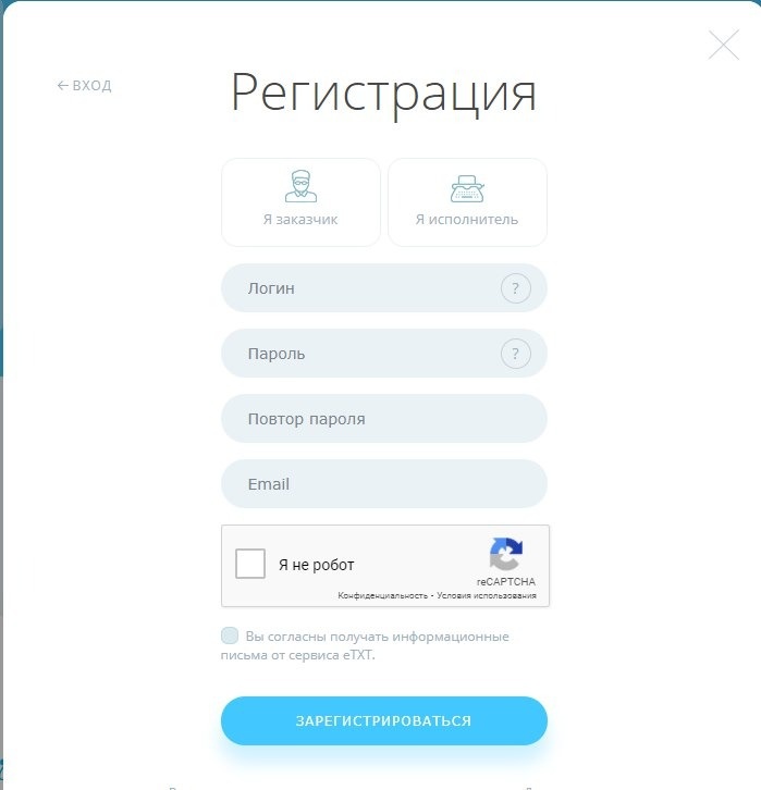 Рекомендую вам перейти на сам сайт Etxt и открыть здесь свой аккаунт заказчика или исполнителя статей.