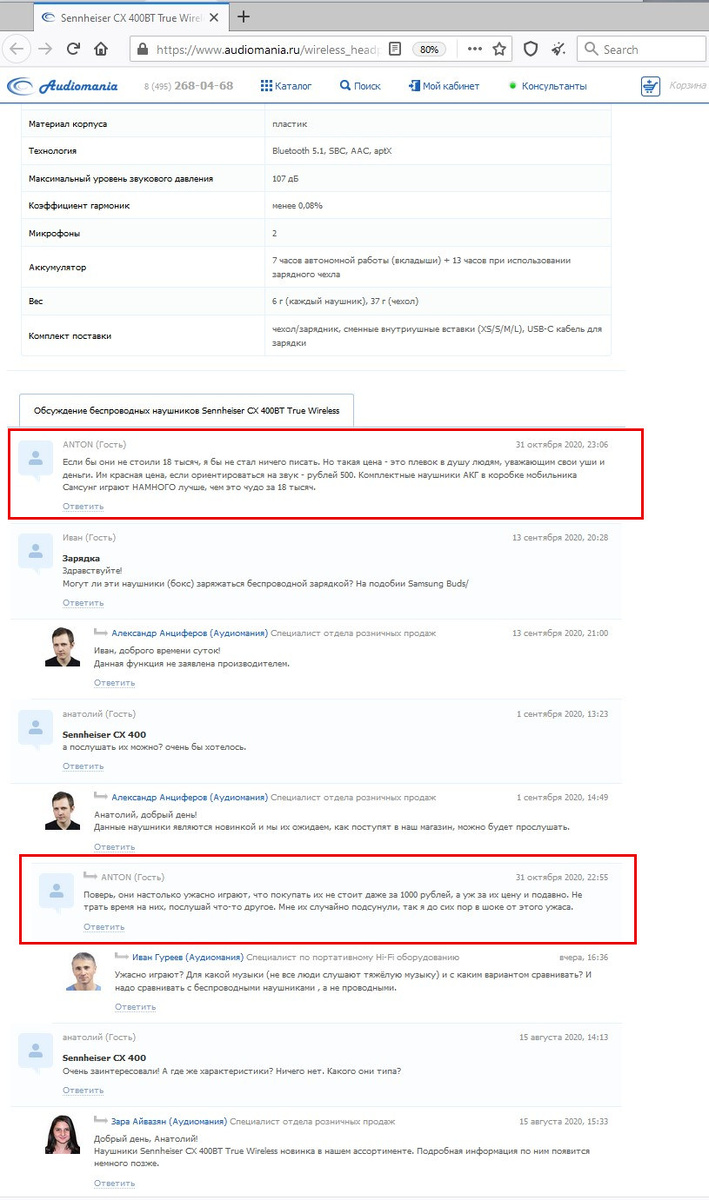 Было бы хорошо, если бы нашлись люди, кто действительно послушал бы данную модель в магазине и, в случае согласия с моим мнением про их "звучание", высказался бы о них на обоих сайтах под соответствующим товаром. Интересно, как много мнений людей они готовы игнорировать и отгораживаться от не подходящих для их бизнеса мнений.