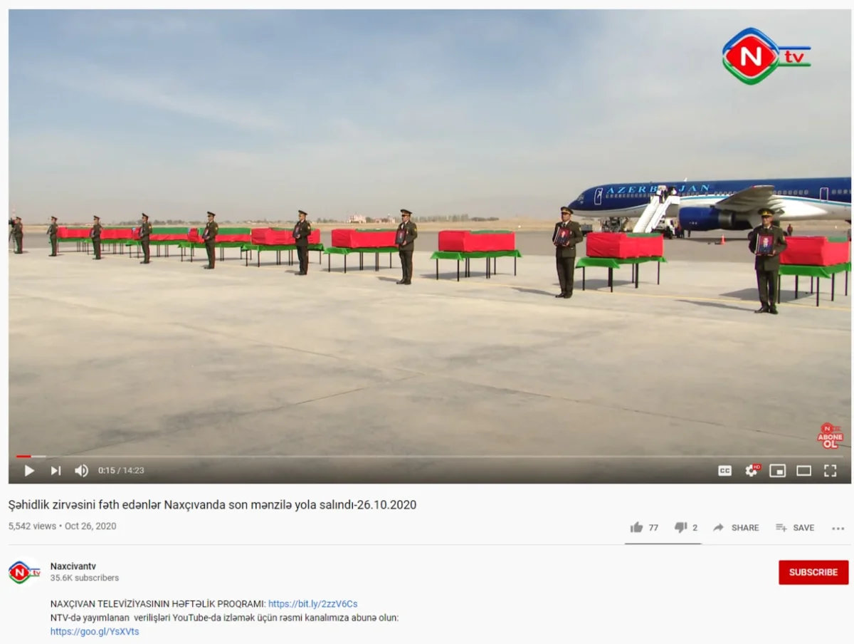 В Telegram: Şəhidlər.info появилась информация от 25 октября 2020 г. о привезенных 31 гробах за последнюю неделю в Нахичевань. Там же выложены фотографии и видео прощания с погибшими (ссылка: https://t.me/sehidlerinfo/187?single).