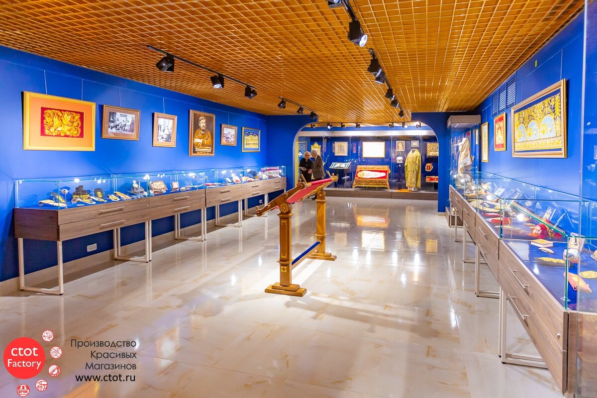 Фабрика Ctot Factory продолжает сотрудничество с компанией-производителем товаров с золотным шитьём «Торжокские Золотошвеи». Сегодня мы предлагаем рассмотреть музей Золотного Шитья, выставочное оборудование для которого было создано Ctot Factory.