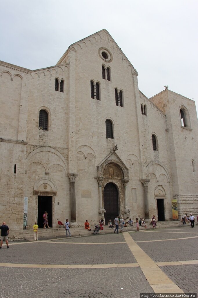 Базилика Святого Николая была построена для хранения мощей святителя Николая Мирликийского, перенесённых из города Миры.В 1071 году город Бари – крупный торгоый порт и столица и Византийской Италии — был завоеван норманнами (варягами) и потерял свое экономическое значение. Барийцы решили отправиться в Миры Ликийские (Малая Азия, ныне территория Анталии, Турция), чтобы забрать мощи Св. Николая. Таким образом они надеялись на покровительство одного из самых почитаемых святых в Византии, который издавна считался покровителем моряков и купцов, и его помощь в поднятии авторитета и популярности города. В 1087 году 62 Барийских мореплавателя отпраились в Миры, где под видом паломников проникли к гробнице святого и открыли ее. Вынув источающие миро мощи святого, им удалось отразить сопротиление греческих монахов и перенести мощи на корабль. В мае 1087 года корабль достиг берегов Бари. Первоначально, предполагалось разместить мощи в кафедральном соборе, но затем было решено построить специальный храм.В июле того же года начались работы по воздвижению новой базилики. В 1089 году мощи Святителя были положены в крипту (подземную часовню) новой Базилики, где они находятся и по сей день.Хотя Базилика принадлежит римско-католической церкви и управляется монахами доминиканцами, предствители разных конфессий имеют разрешение на богослужения в крипте. Совместные службы здесь также не редкость.Базилика Святого Николая, являясь несомненно главной городской святыней, представляет и значительный художественный и исторический интерес: именно этот храм, имеющий прелюбопытнейшую историю, считается прототипом апулийской романики. Скульптурные украшения церкви, выполненные по известняковому камню, иллюстрируют сложность средневековой христианской символики: расшифровка сложных переплетений фигур в орнаментах порталов и в капителях колонн похожа на увлекательную головоломку. Исторические документы, связанные с самим храмом и с предысторией того места, на котором он был построен, находятся в недавно открытом при Базилике музее.Во дворе базилики установлена скульптура Святого Николая Чудотворца, работа архитектора Зураба Церетели. Установлена скульптура в 2003 году.