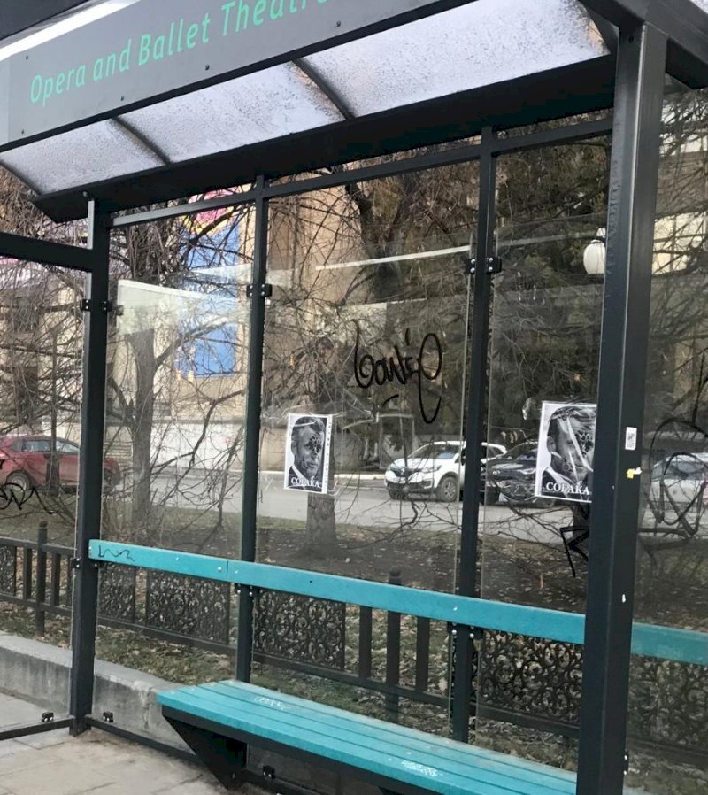Надо же! Даже в нашем мегаполисе актуальные мировые темы не оставляют равнодушными некоторых. В редакцию ЕАН прислали фото обклеенной портретами президента Франции остановки "Оперный театр" рядом с УрФУ. Над фото Эммануэля Макрона жирным шрифтом красуется надпись "СОБАКА".