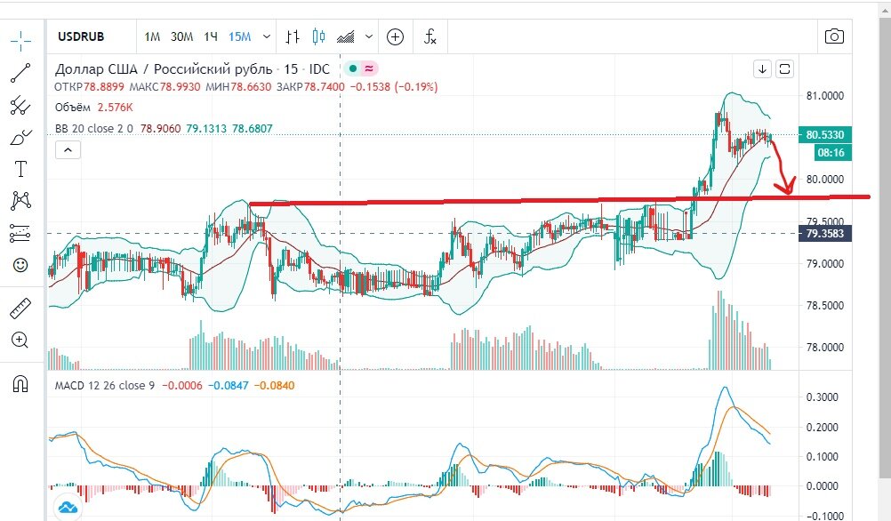 Так и случилось в начале торгов, когда цель 80 была подтверждена , а стопы за пределами 80 дали возможность доллару взлететь практически к 81.