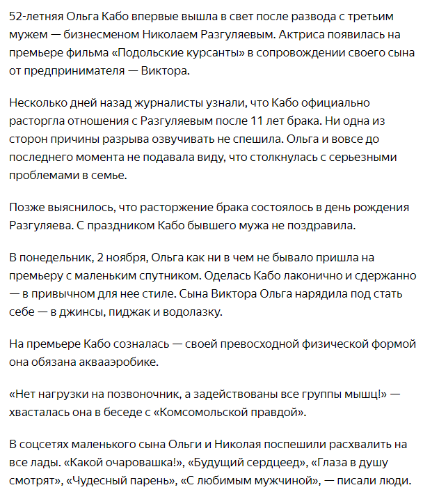 Ольга Кабо впервые вышла в свет после развода с третьим мужем