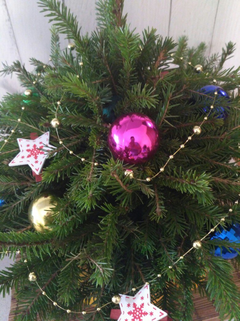 Если не получается купить большую настоящую можно приобрести много веточек и цветочную пену. Пену обрежьте в виде конуса и воткните в нее веточки.