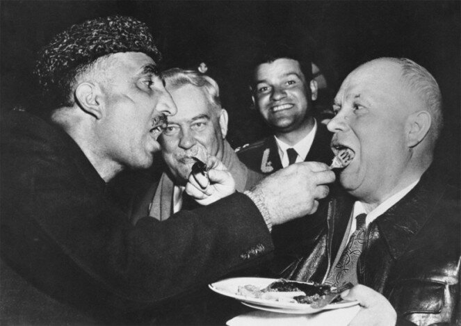Mister Khrushchev said «We will bury you» - тревожно пел Стинг в песне Russians в 1985 году. Никита Сергеевич в своем самоутверждении сумел нагнать страх на несколько поколений «империалистов» своим неадекватным поведением. Больше всего Хрущеву полюбилась фраза «мы вас закопаем». Ему очень нравилось выступать в образе «могильщика капитализма», нравилось напрягать, как гопнику, чувствующего в кулаке вес кастета и мощь ватаги за спиной, нравится задирать прохожего. Он напрягал Кеннеди, он напрягал Никсона, и чувствовал от этого эмоциональной подъем «беспредельщика».