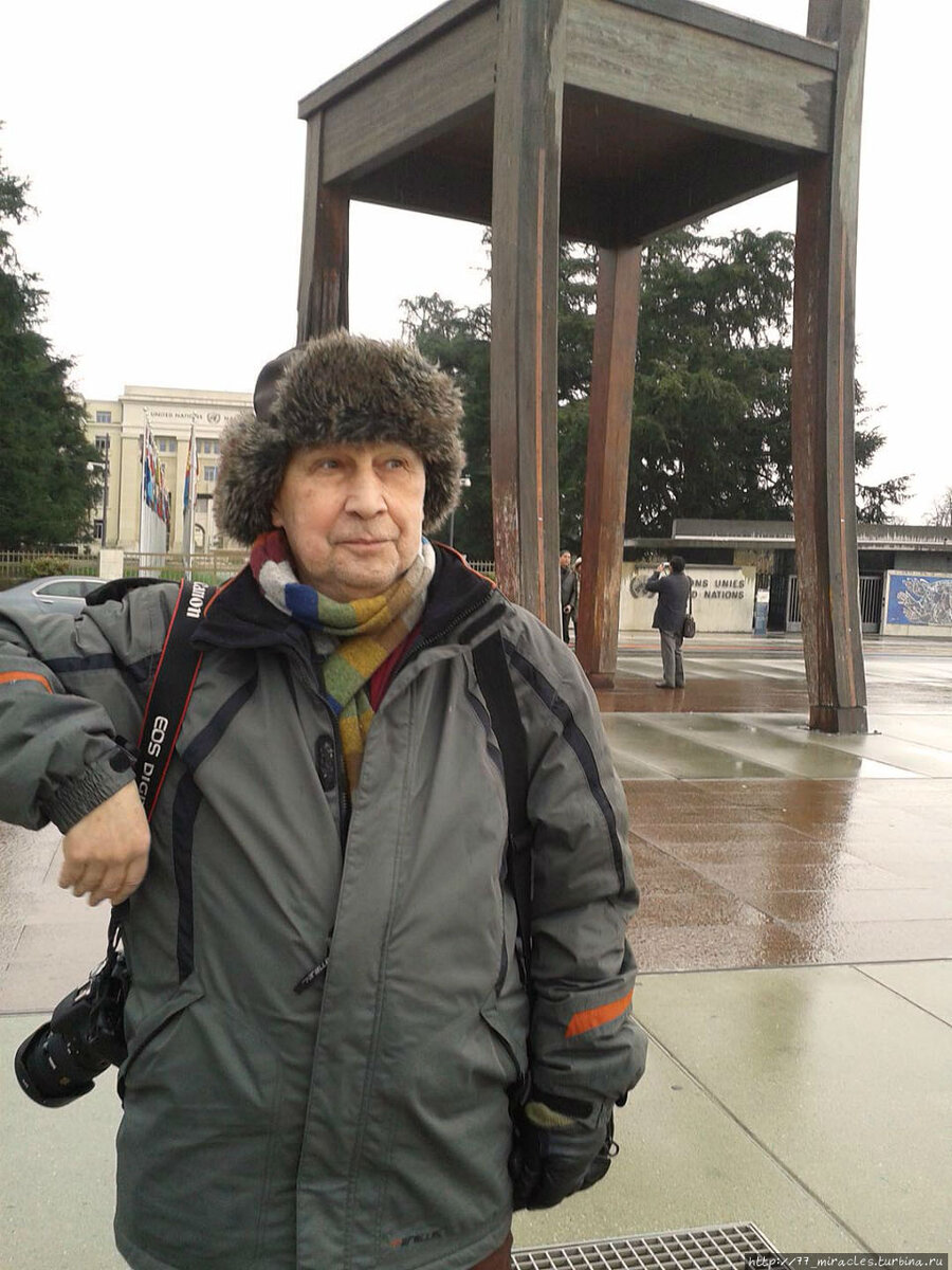 Если сесть на вокзальной площади (Pl.de Cornavin) в трамвай номер пятнадцать и доехать до конечной Площади наций, можно полюбоваться на ООН (за солидным забором) и другие международные организации и, конечно же, на знаменитую 12-и метровую скульптуру стула на трех ножках, что символизирует запрет противопехотных мин. Собственно, ради стула сюда и едут, потому что международные конторы особого интереса не представляют.