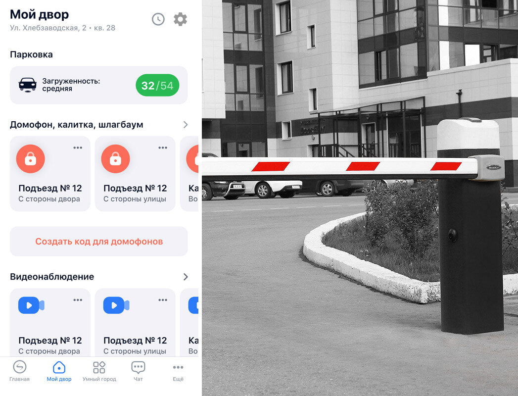 Управление шлагбаумом доступно через мобильное приложение «Интерсвязь.Умный город» - пользователь может удаленно открыть шлагбаум, например, для гостей или различных служб.