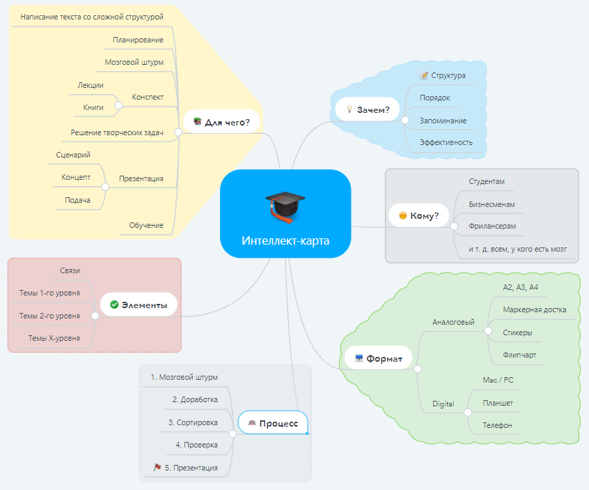 В заключение, отмечу, что при грамотном использовании интеллект-карт, этот инструмент может стать вашим незаменимым помощником. С ним вы сможете больше успевать, масштабнее мыслить и реализовывать больше проектов.