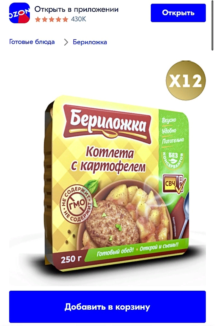 В офисах или на учебе, в дороге и путешествии - Вас всегда выручит "Бериложка" - готовые обеды по домашним рецептам. Наши блюда теперь можно приобрести на разных маркетплейсах Ozon, Wildberries, Беру, Яндекс.Маркет с доставкой на дом или на работу, а также Вы всегда найдете "Бериложку" на полках сетевых магазинов "Пятёрочка", "Магнит", "Перекрёсток", "Дикси" и "Окей".