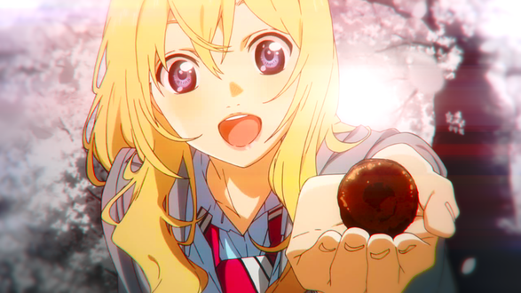 Но в один момент, главный герой встречает прекрасную девушку Каори. Она играет на скрипке, которая оказалась не менее талантливее, чем Арима в свои годы. Парню показалось, что музыка девушки, отражает его душу. Каори решается помочь герою снова заиграть на фортепиано. Получится ли у них все? Остается только смотреть аниме.