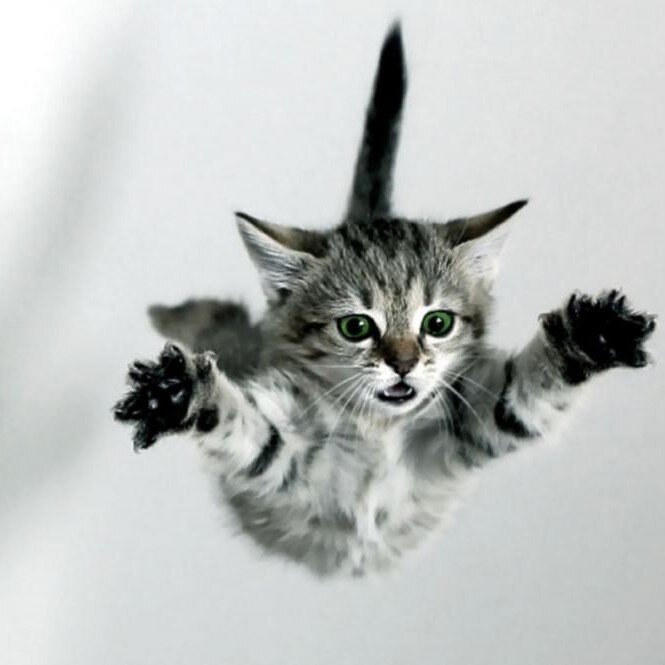 Хорошо развитый вестибулярный аппарат, гибкость и эластичность позвоночника позволяет кошке в процессе полета выравнивать положение тела относительно к земле.