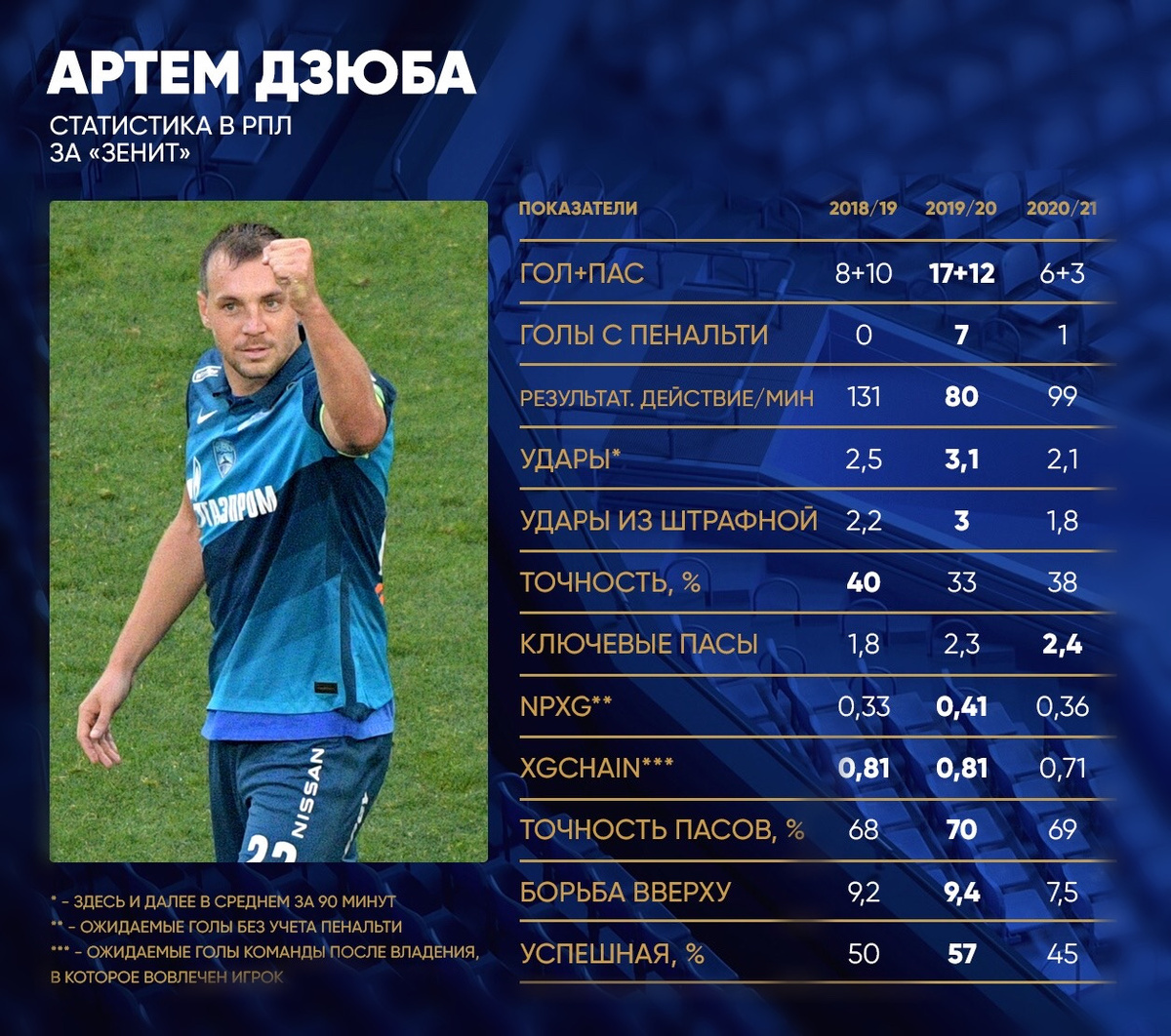 Артем и правда сбавил: упало количество ударов, он меньше борется за мяч и реже выигрывает единоборства.